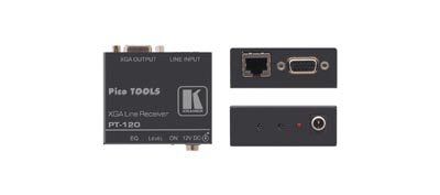 El PT-120 es un receptor de par trenzado para señales gráficas de video por ordenador. Convierte una señal de par trenzado desde un transmisor PT-110 (u otro transmisor Kramer compatible) a una señal gráfica de ordenador.
